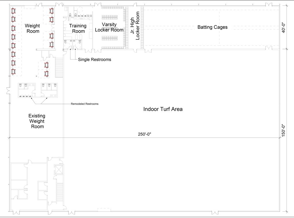 This expansion project is being 100% funded by community donations, with absolutely no cost to the school district. Together, we are demonstrating our commitment to providing the best resources for our students and athletes, ensuring the continued success of Washington sports. We are incredibly grateful for the generosity of the donors who have already contributed to make this expansion possible. This expansion will add another 10,000 sq ft to the original facility, including a new weight room, locker rooms, and batting cages. We are excited to see how this expansion will further enhance the Washington athletic program and ensure the bright future of our sports teams.